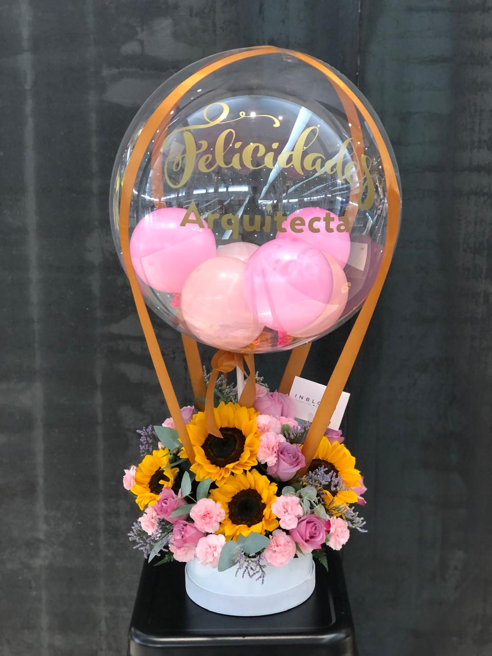 Arreglo floral con globo burbuja