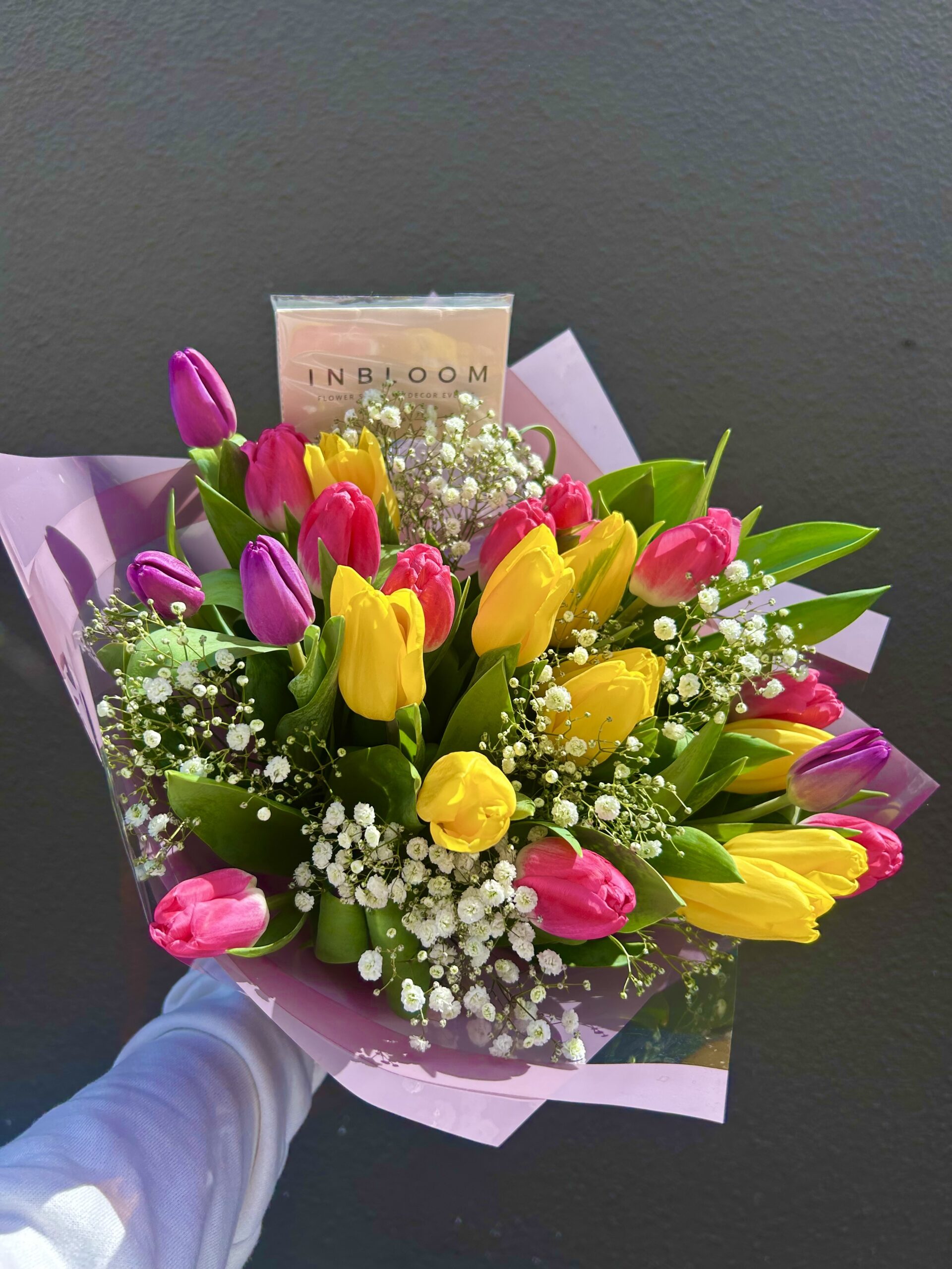 Ramo de 25 tulipanes y baby breath cantidad