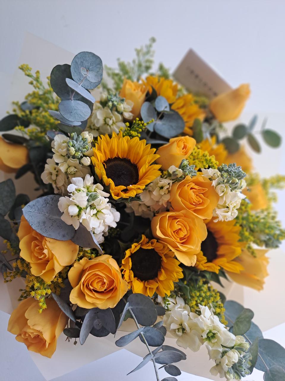 Ramo de girasoles y rosas