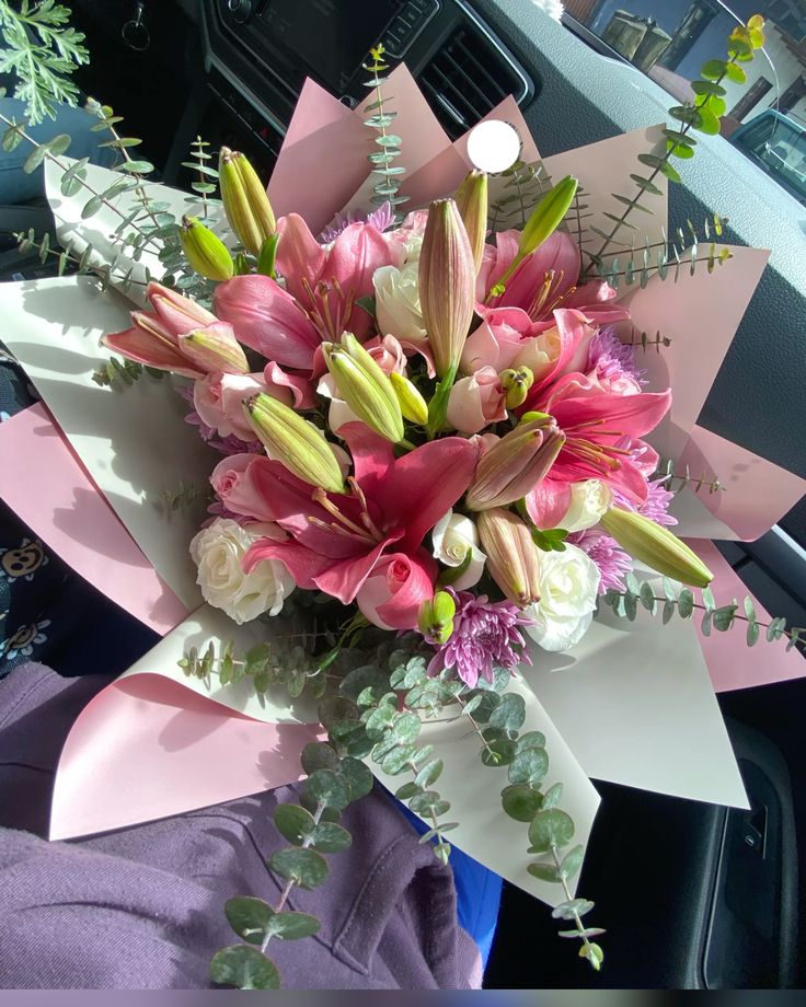 Ramo de rosas y lirios